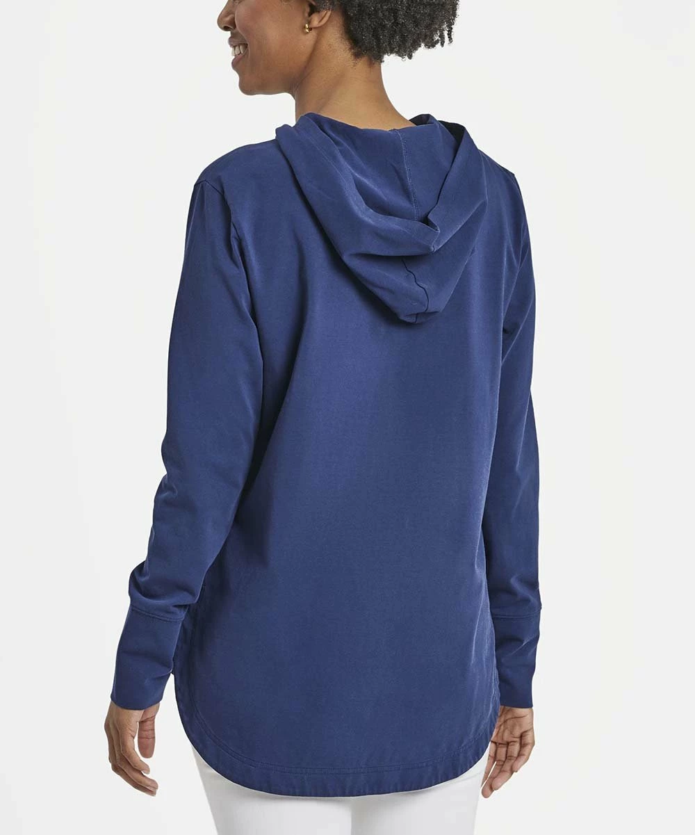A cotton-blend hoodie with a hi-low silhouette and kangaroo pocket.